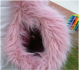 aus Kunstfell, ohne Innenfach, sorgfältig in Handarbeit gefertigt